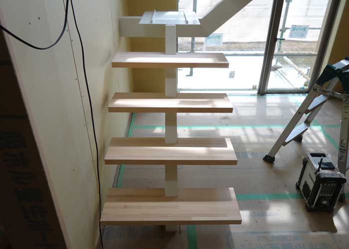 ③ さらに、ブナの踏み板(段板)が取り付けられました